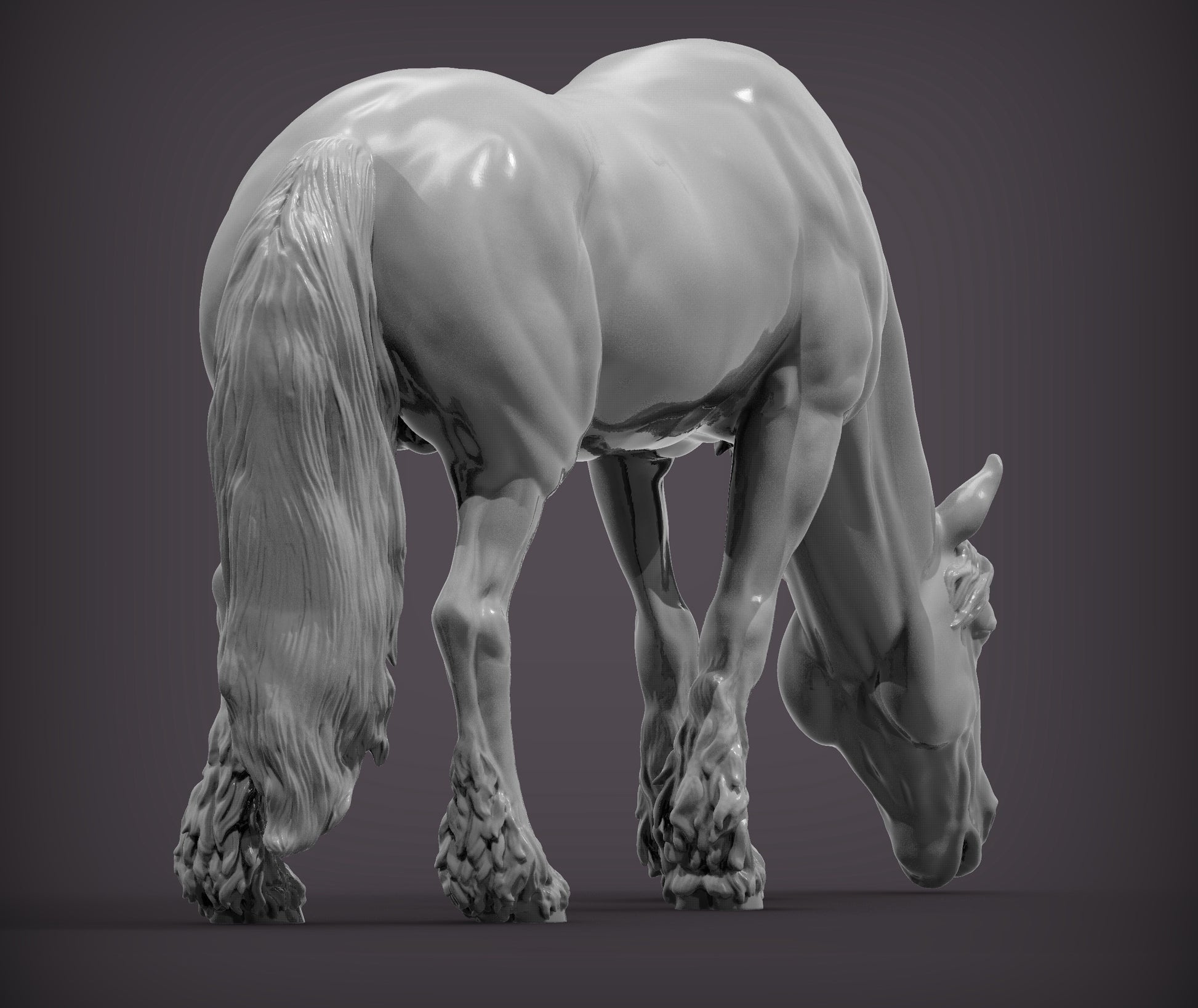 Friesian Horse Eats Grass – Unpainted 3D Print | ABS White Resin