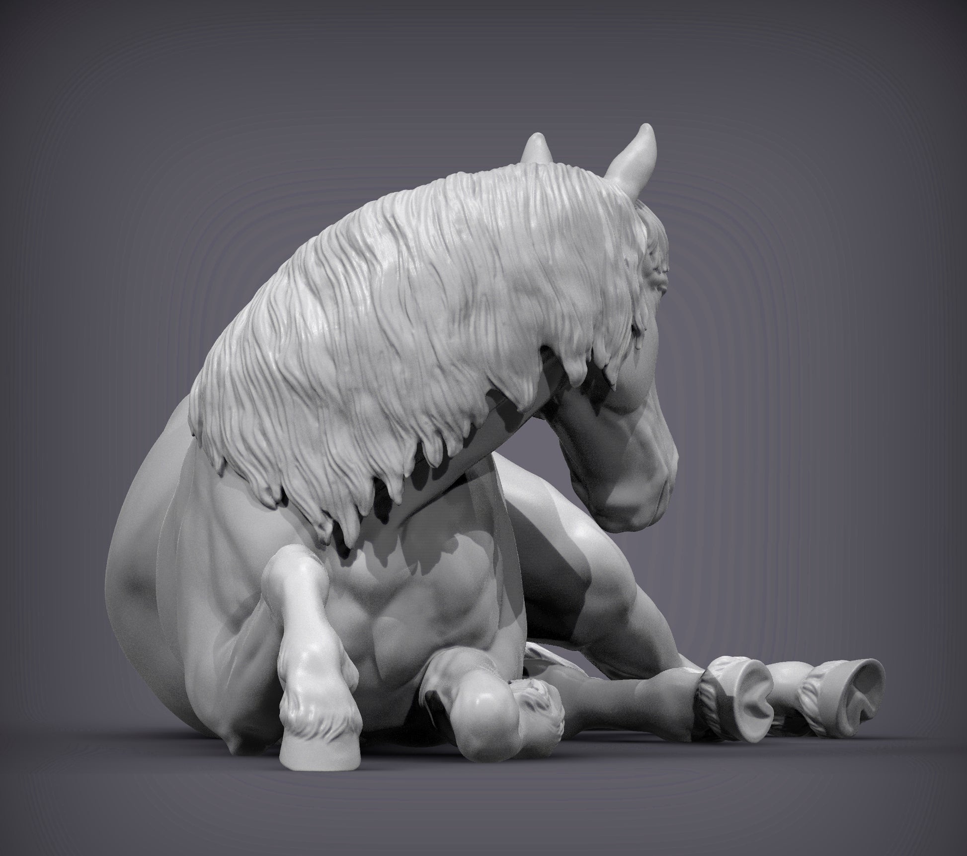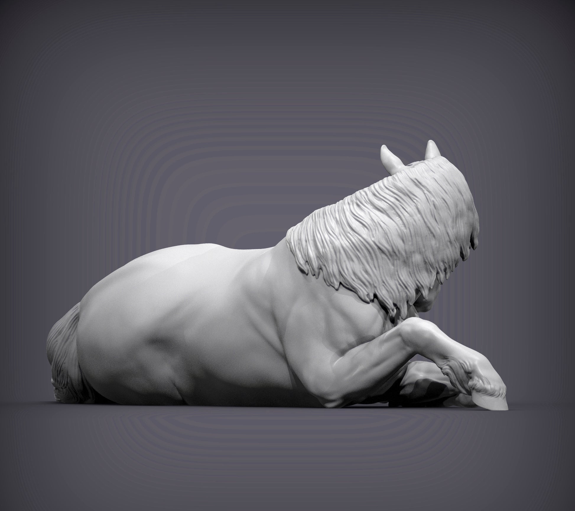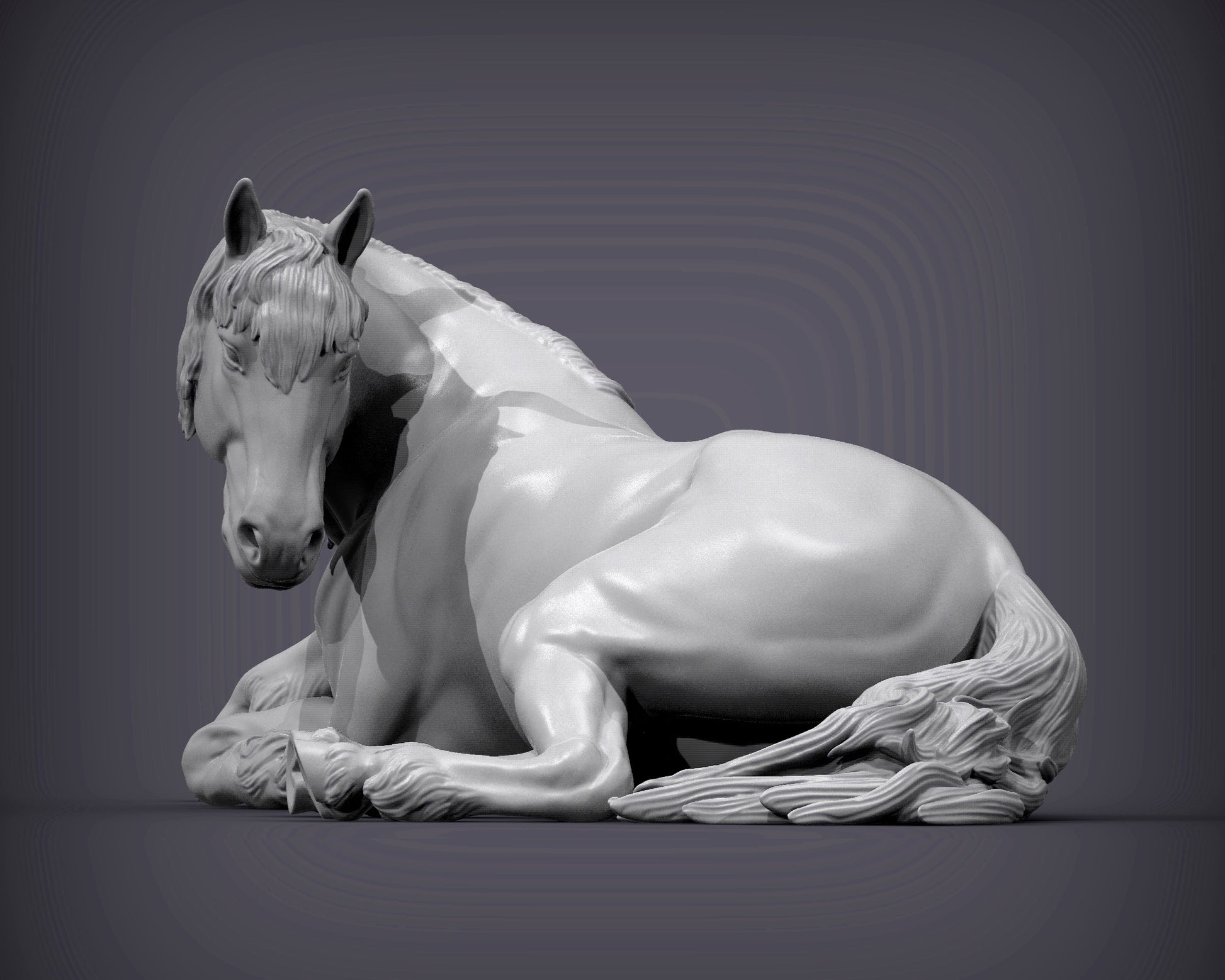 Percheron Horse (Lying Down) – Unpainted 3D Print | ABS White Resin