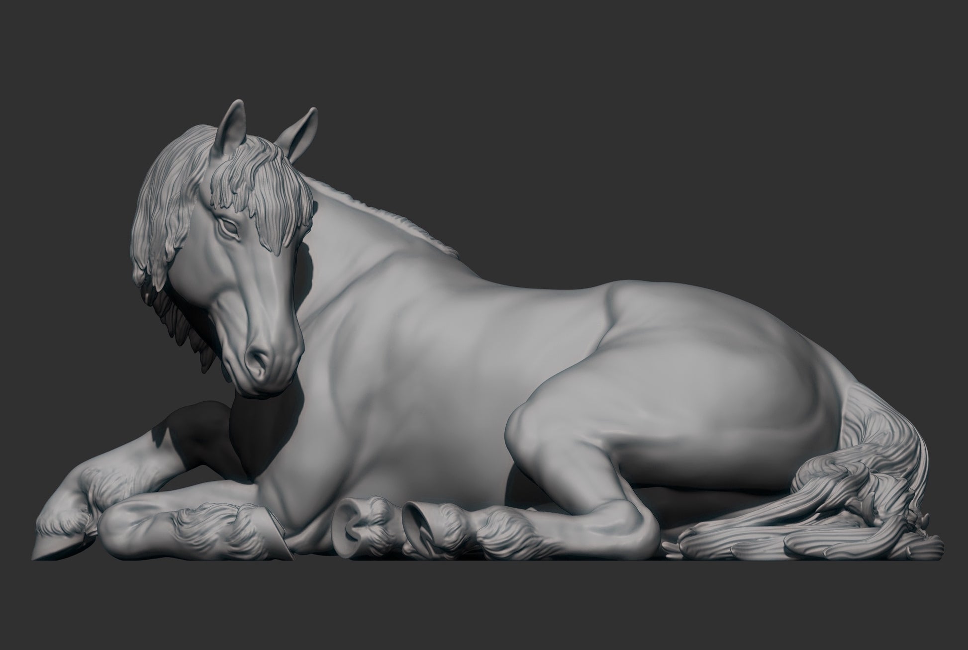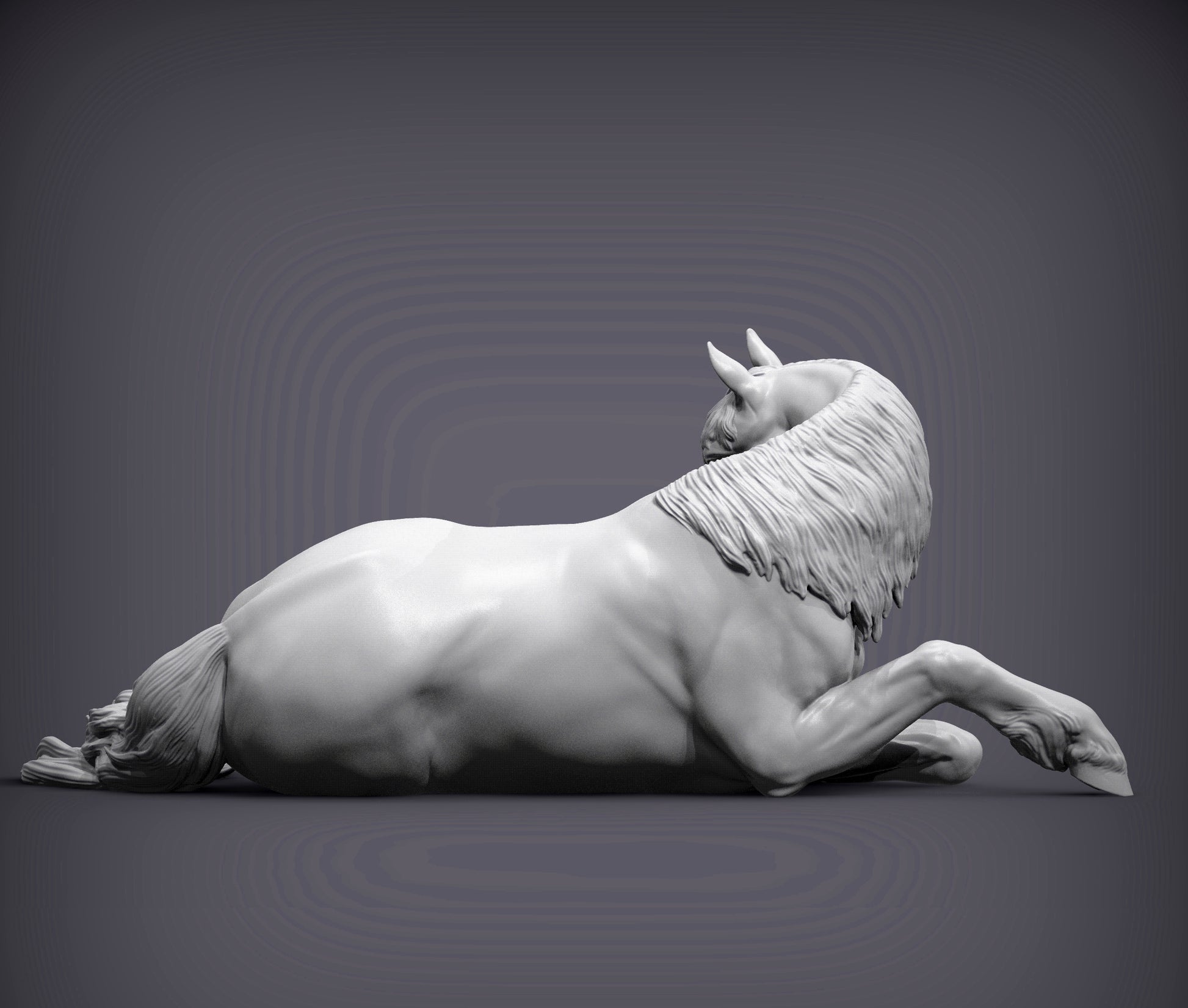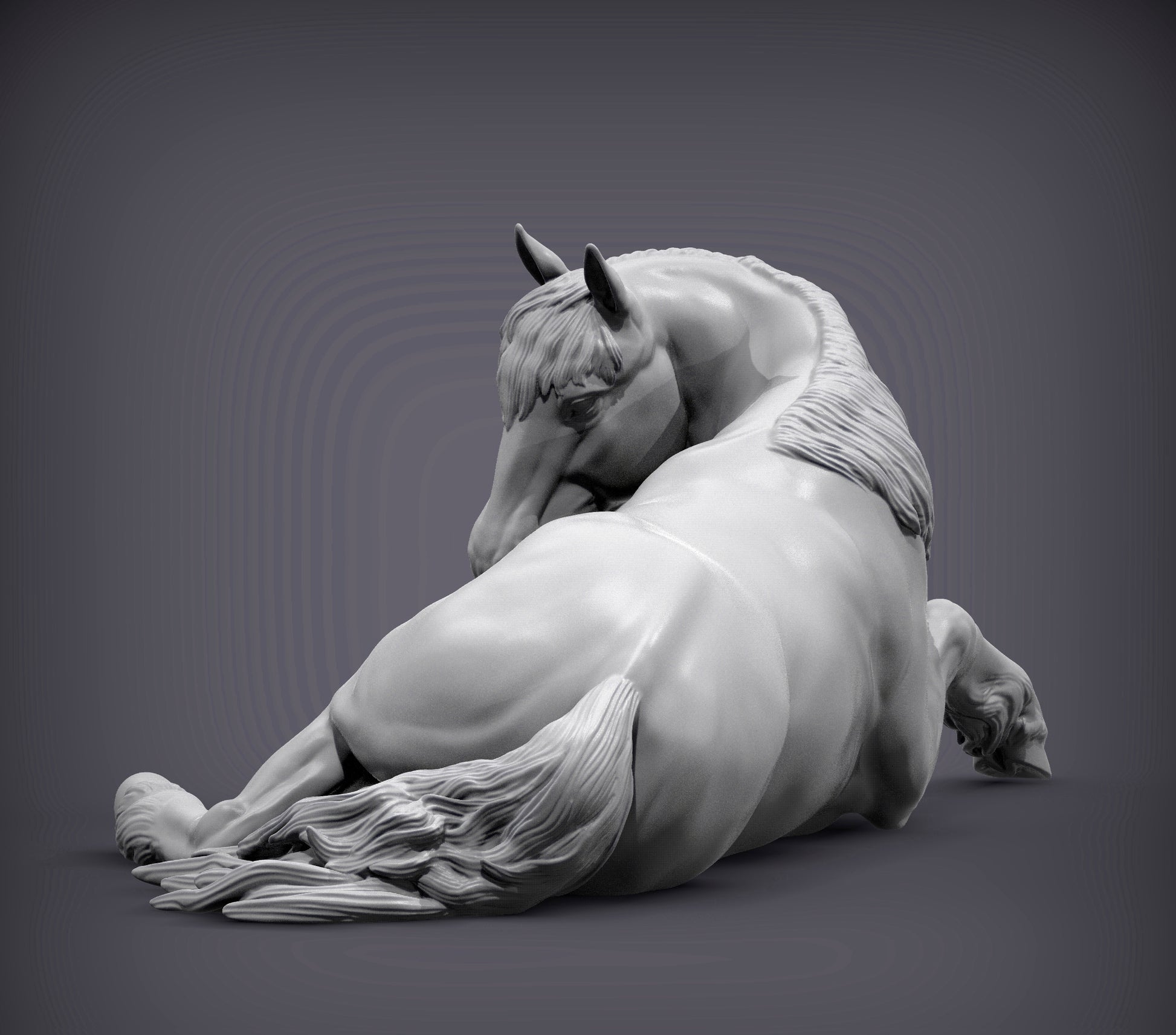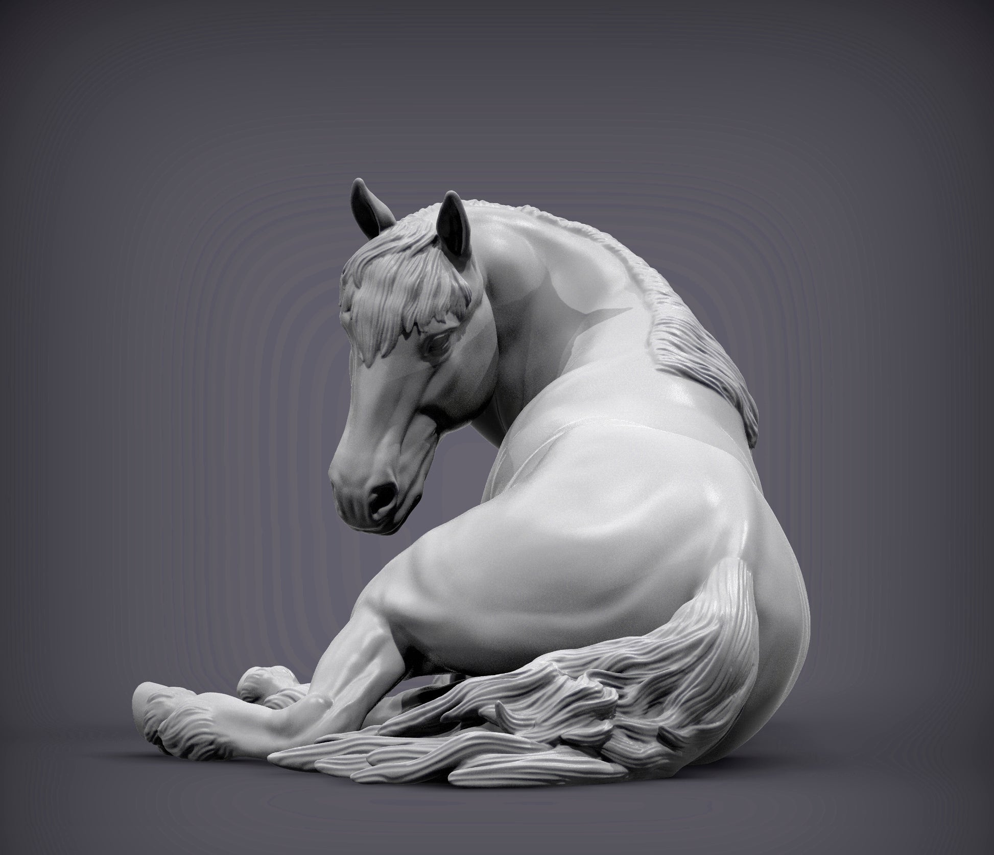 Percheron Horse (Lying Down) – Unpainted 3D Print | ABS White Resin
